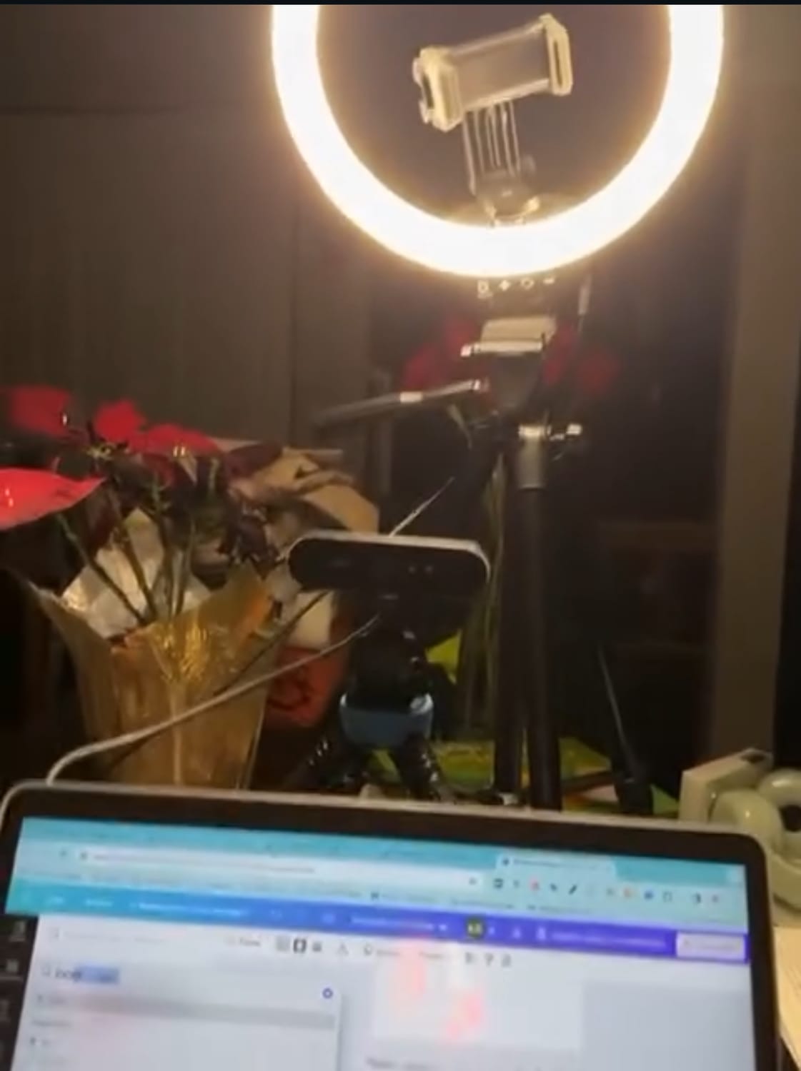 Literalmente usé una webcam vieja que ya tenía (aunque podía haber usado la de la laptop), un aro de luz, una app gratis para grabar mi pantalla (Loom) y Canva.